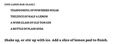 Konzentrieren wir uns auf die zwei Rezepturen des John Collins, illustriert von Stanley Clisby Arthur (1938) und von Mardee Haidin Regan (2010). Damit wäre die Rezeptur von Stanley Clisby Arthur “falsch”. Meiner Meinung nach wäre “falsch” nicht die passende Wortwahl.