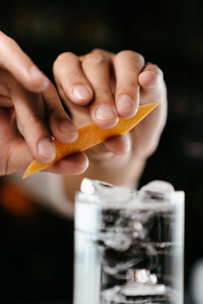 Stone Fence – 60 ml dunkler Rum, 60 ml Cider, Orangen Zeste als Garnitur, (Ursprünglich mit Whiskey)